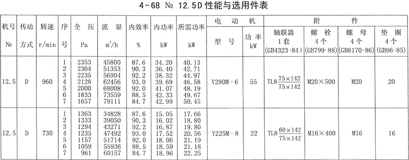 4-68性能與選用件表